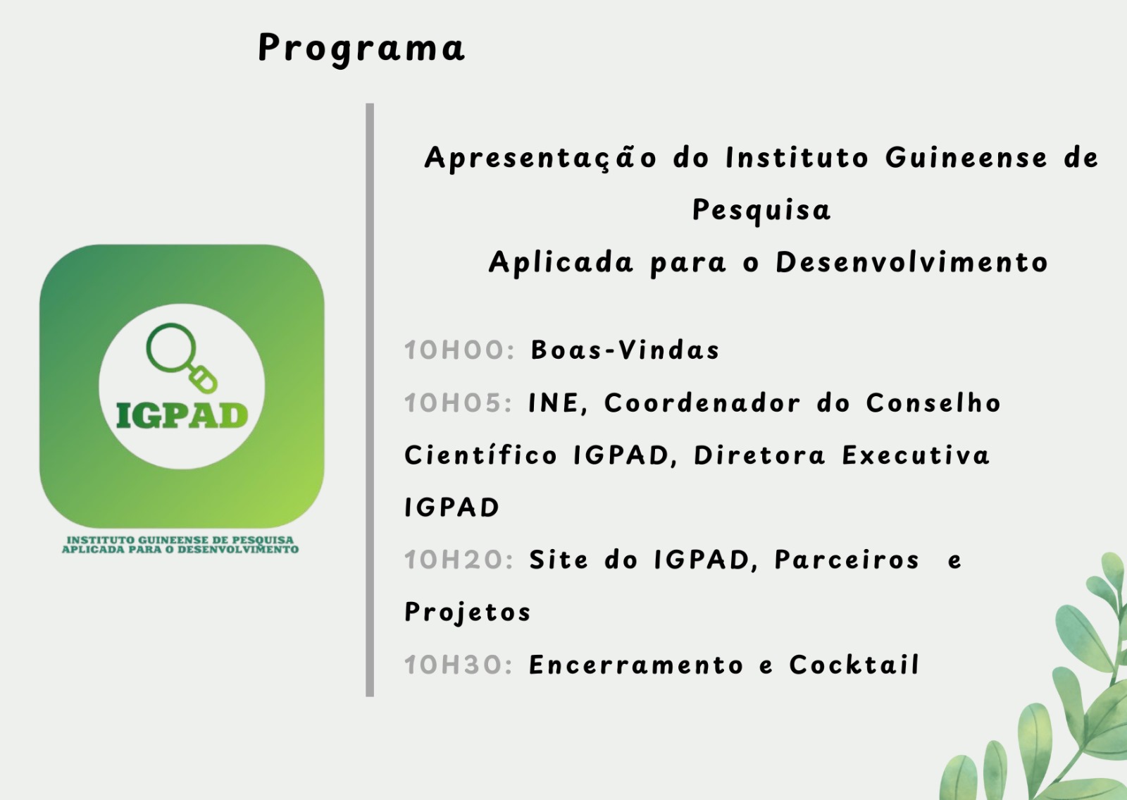 O Instituto Guineense de Pesquisa Aplicada para o Desenvolvimento (IGPAD) é uma pessoa coletiva de direito privado, de caráter científico e educacional e sem fins lucrativos. Sua missão é promover o Desenvolvimento Sustentável, Social, Econômico e Ambiental da Guiné-Bissau através da Pesquisa Aplicada. O IGPAD propõe-se a contribuir para a Inovação Científica, a apoiar na elaboração e no fortalecimento de Políticas Públicas e bem como na Capacitação de Profissionais e de Organizações para a formulação de Estratégias de Desenvolvimento.